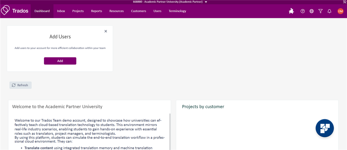 Once logged in, you should now see the Trados Cloud capabilities Dashboard