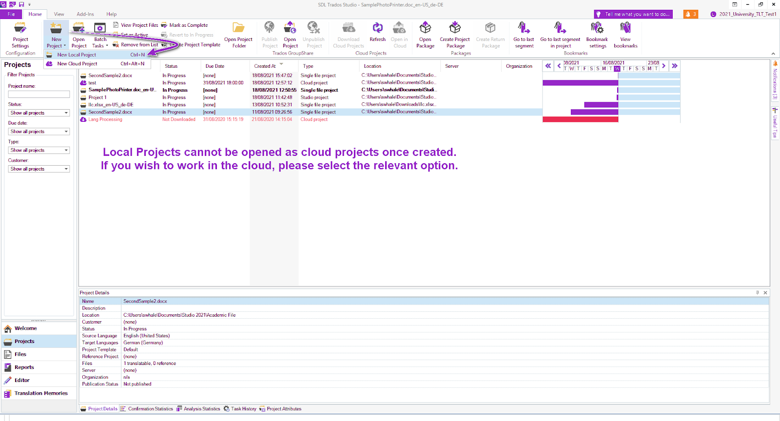 With Trados Studio , you have the ability to create a New Local Project.