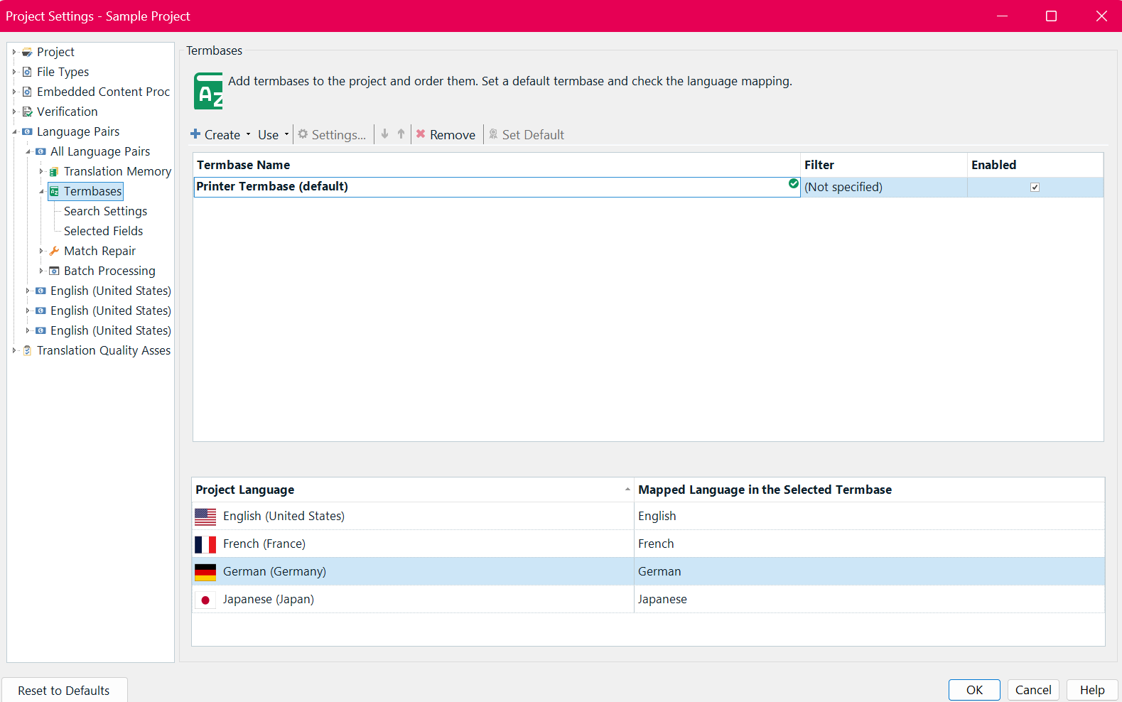 If you have installed the Sample files- you will have the sample Printer Termbase C:\Users\YOUR NAME\Documents\Studio 2024\Termbases