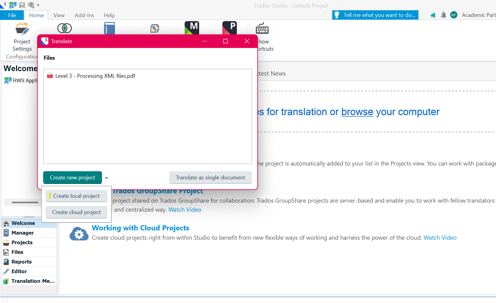 • Accessing Trados Cloud capabilities