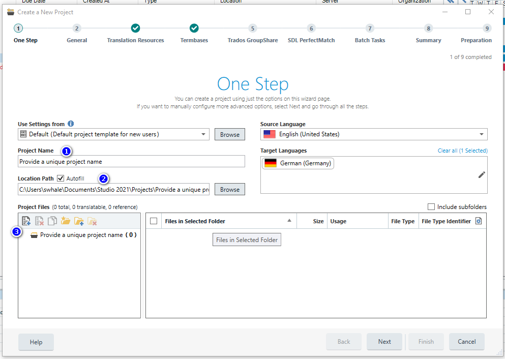 Select required Translation Memories (local/server) and Machine Translation provider(s)*
