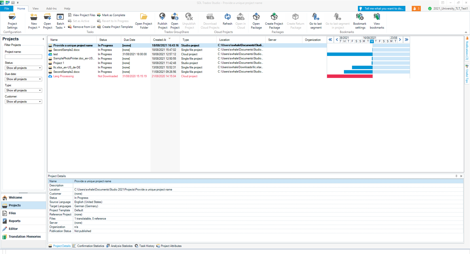In this example, as Machine Translation Cloud was added to the project, the project has been largely 'pre-translated'.