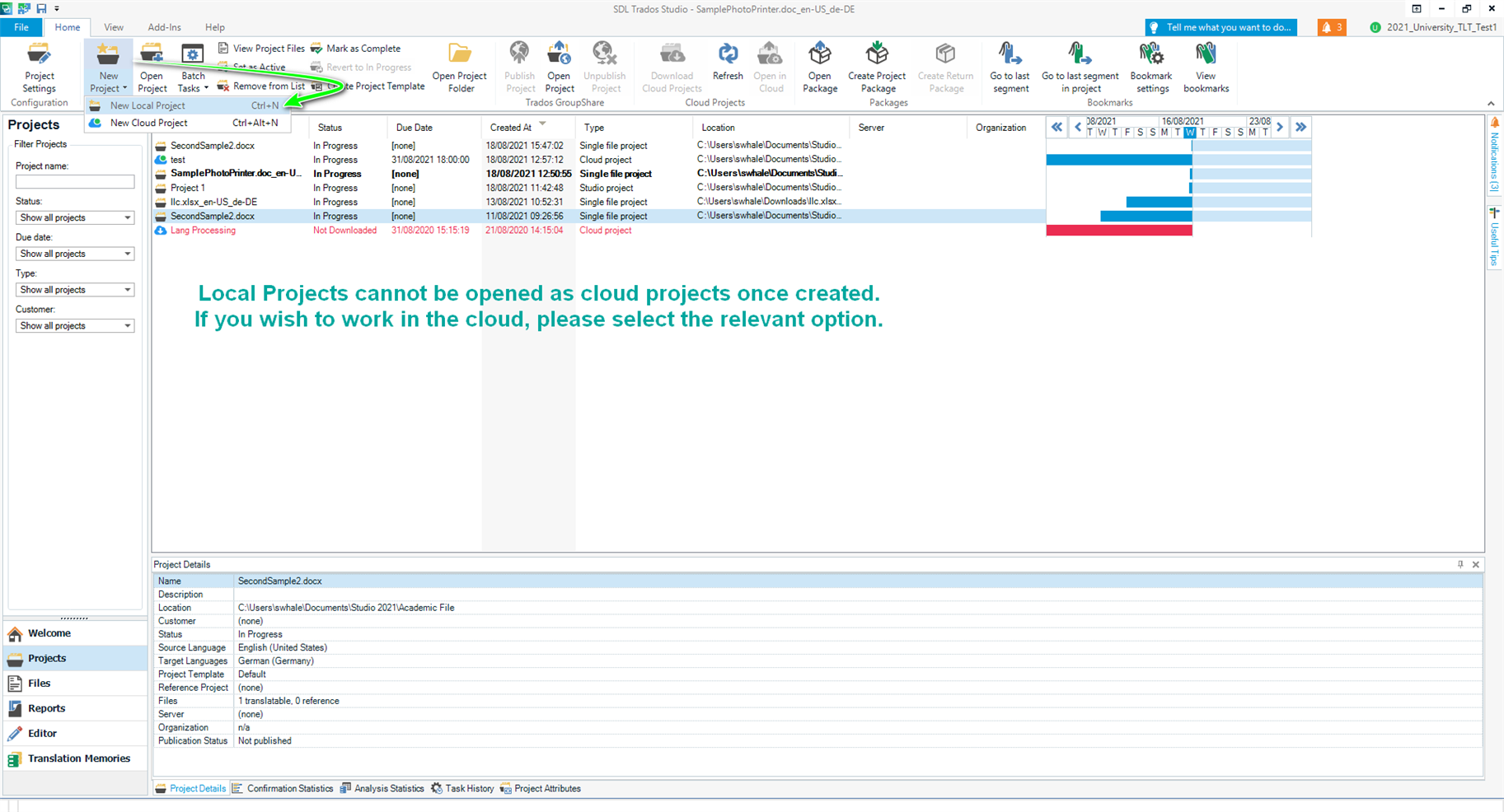 With Trados Studio , you have the ability to create a New Local Project.