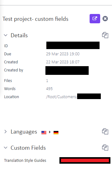 I would like to link my shared query sheets and styleguides directly to a Project Template. It's theoretically possible to do via Custom Fields, but right now the translators can't actually see them. Can we please have the option to make them visible for translators/reviewers?