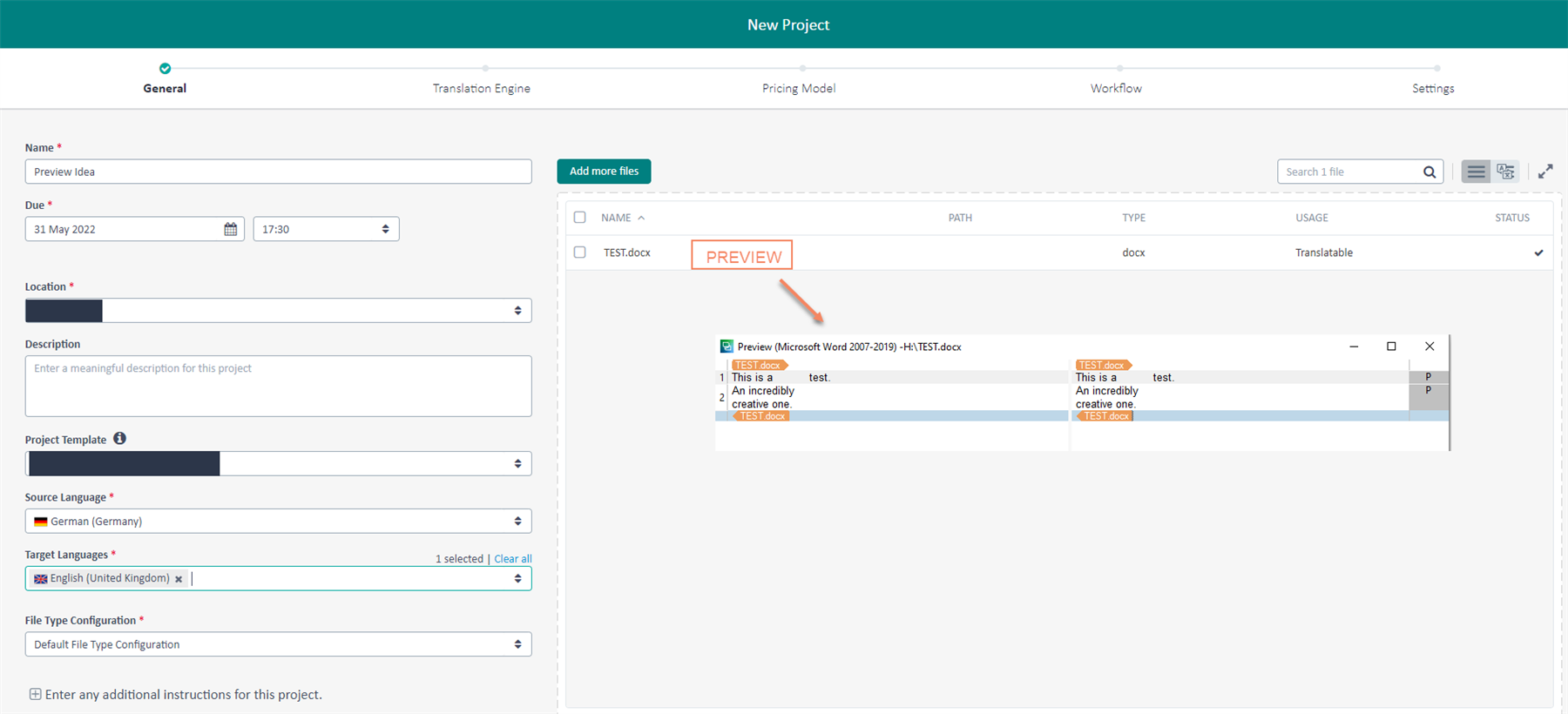 A "preview" option when creating a new project which will show the project manager how a file will be displayed and segmented so that s/he can see if the project can be started like this or if either file or file format filter will have to be modified first. This could look like this: