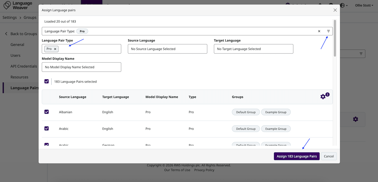 - After selecting the relevant language pairs, select "Assign Language Pairs"