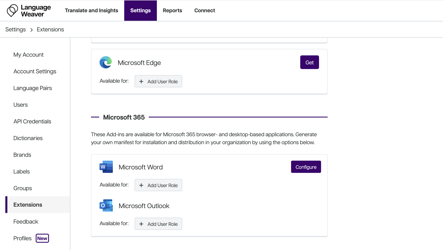 Profiles are predefined sets of conditions and settings that manage translation configurations in a structured way. They ensure consistency, control, and automation in translation workflows, reducing manual setup and standardizing outputs across an account.