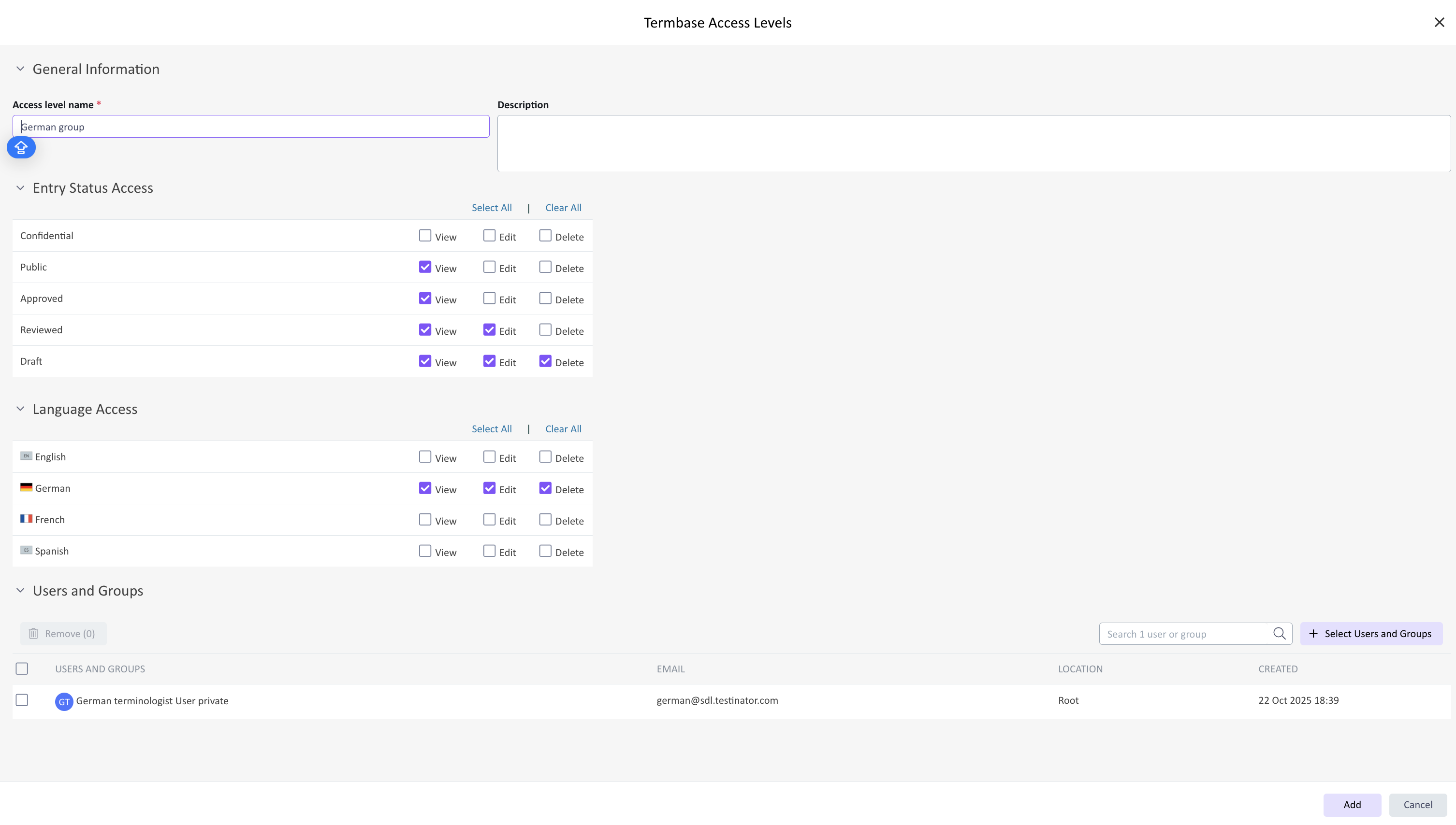 We are introducing granular access control for cloud termbases via entry statuses and access levels, giving organizations precise control over who can view or edit terminology - down to individual languages.