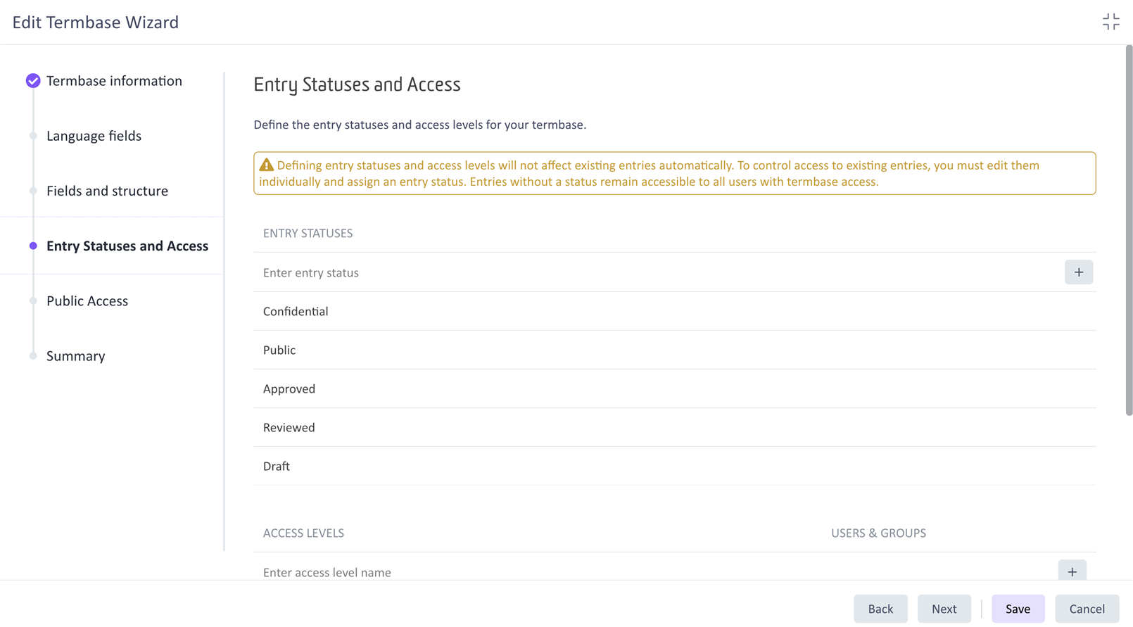 Entry Statuses and Access Levels for more controlled access to Termbases