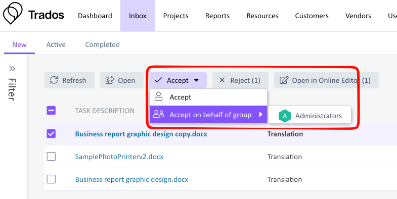 (Applies to Trados Team, Accelerate/Business and Enterprise)