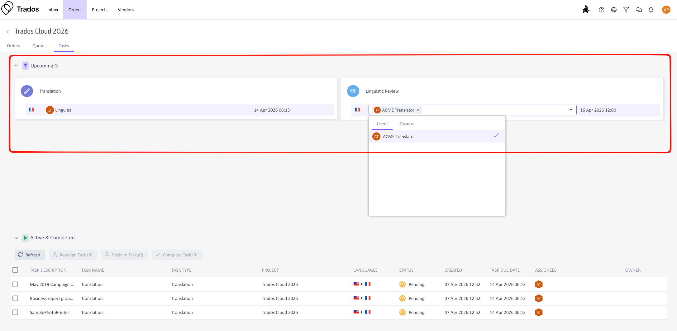 - Pre-assignment: Vendor PMs no longer have to wait for a preceding task to be completed before assigning the next one. You can now seamlessly pre-assign upcoming tasks (e.g., assigning translation to one linguist and review to another ahead of time).