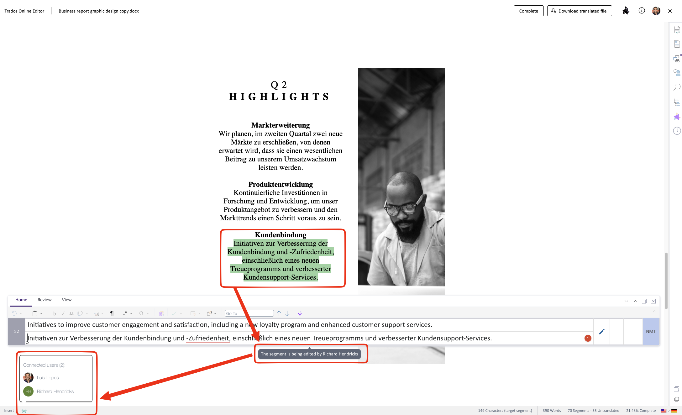 We are thrilled to introduce real-time concurrent editing within the Online Editor. For the first time, multiple users—such as translators and reviewers—can work on the same document simultaneously.