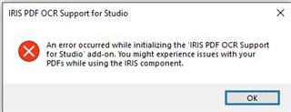 Hey, I have the following error while initializing the IRIS PDF OCR Support. I tried twice to install the IRIS plugin, allways the same error message.