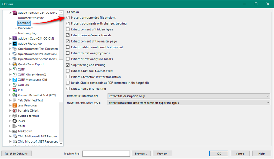 J'ai bien coché la case "Traiter les versions de fichier non prises en charge" dans la page Commun sous Adobe InDesign CS4-CC IDML. Comment faire?