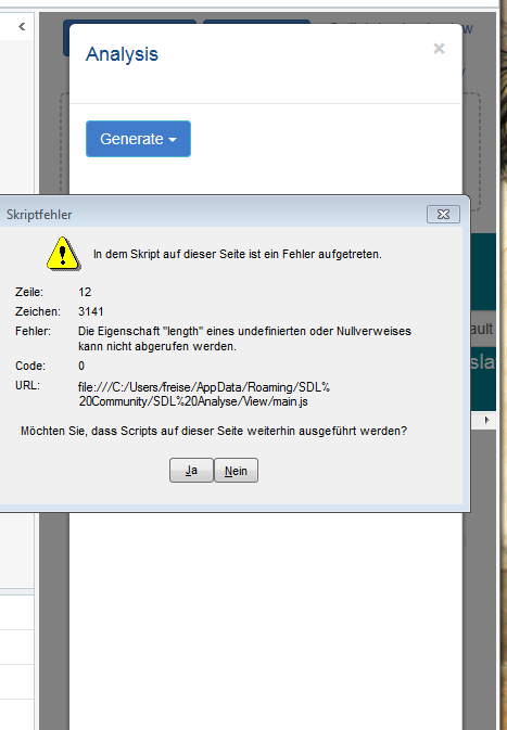 I have freshly installed the SDL Analysis app. When I run an anlysis I get the error message "Die Eigenschaft "length" eines undefinierten oder Nullverweises kann nicht abgerufen werden". I Use the Version 1.8 of the app with Studio 2017 SR 1. Can anybody help?
