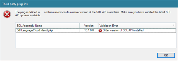 I installed today those two plug-ins, SDL BeGlobal and SDL ETS, and now I get an error message whenever I want to open Studio 2019: