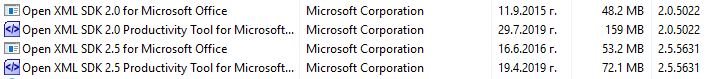 I do have OpenXML installed, here is a Control Panel screenshot: