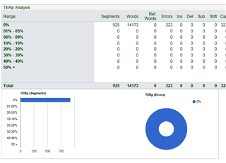 2) Two times we managed (not sure how...) to create a report but TER scores were set to cero, though there were plenty of changes made to the machine translated text during the post-editing: