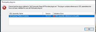 "Third party-plug-ins. Cannot load the plug-in defined in "SDL.Community.DeepLMTProvider.plugin.xml". The plug-in contains references to SDL assemblies that have not been validated for use with third-party plug-ins".