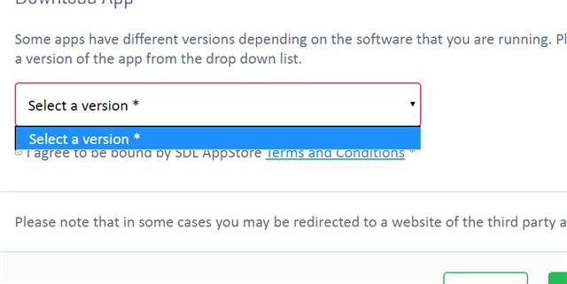 Hello! I have a problem with downloading the app. When I try downloading it, there is a field of selecting a version, but there is no drop down list. Because of this, the "continue" button doesn't work. Could you help me please?