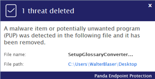 The latest version (6.0.7483) of Glossary Converter cannot be installed on systems protected by Panda Antivirus because Panda AV claims to detect an exploit.