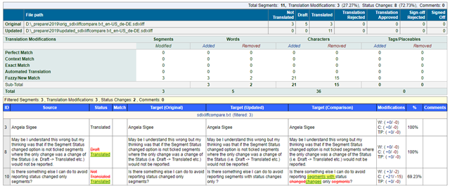 May be I understand this wrong but my thinking was that if the Segment Status changed option is not ticked segments where the only change was a change of the Status (i.e. Draft -> Translated etc.) would not be reported. However, they are. Is there something else I can do to avoid reporting status changed only segments?