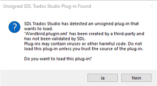 Another bug is that after one installed version 1.5 in Studio 2021, which is the officially working version for 2021, Studio prompts that there is an update and offers to install 1.6. If one then clicks on "Update" to install this newer version and restarts Studio, there is the ususal wanring about an unsigned plugin that comes up on the launch of Studio and if then you check which version of Wordbird is really installed, you will find that it still is 1.5.2019.34376.