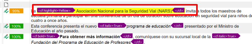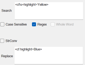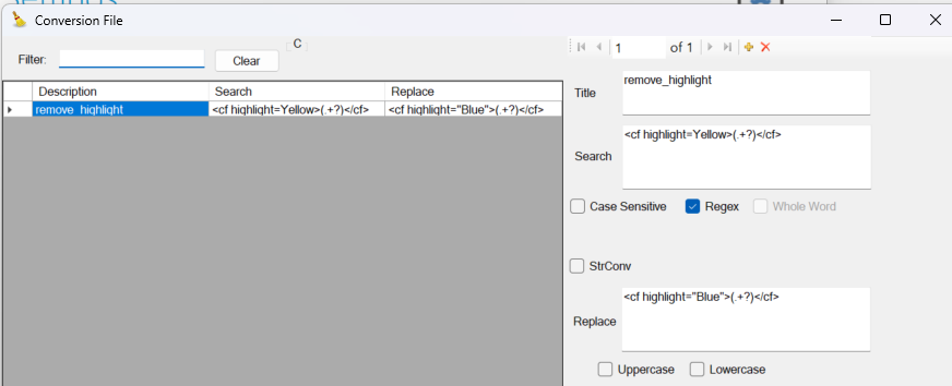 Unfortunately there are many options for the source processing, so we can remove the highlighting without any regular expressions from the source, but not from the target, as the target processing only works with the conversion files.