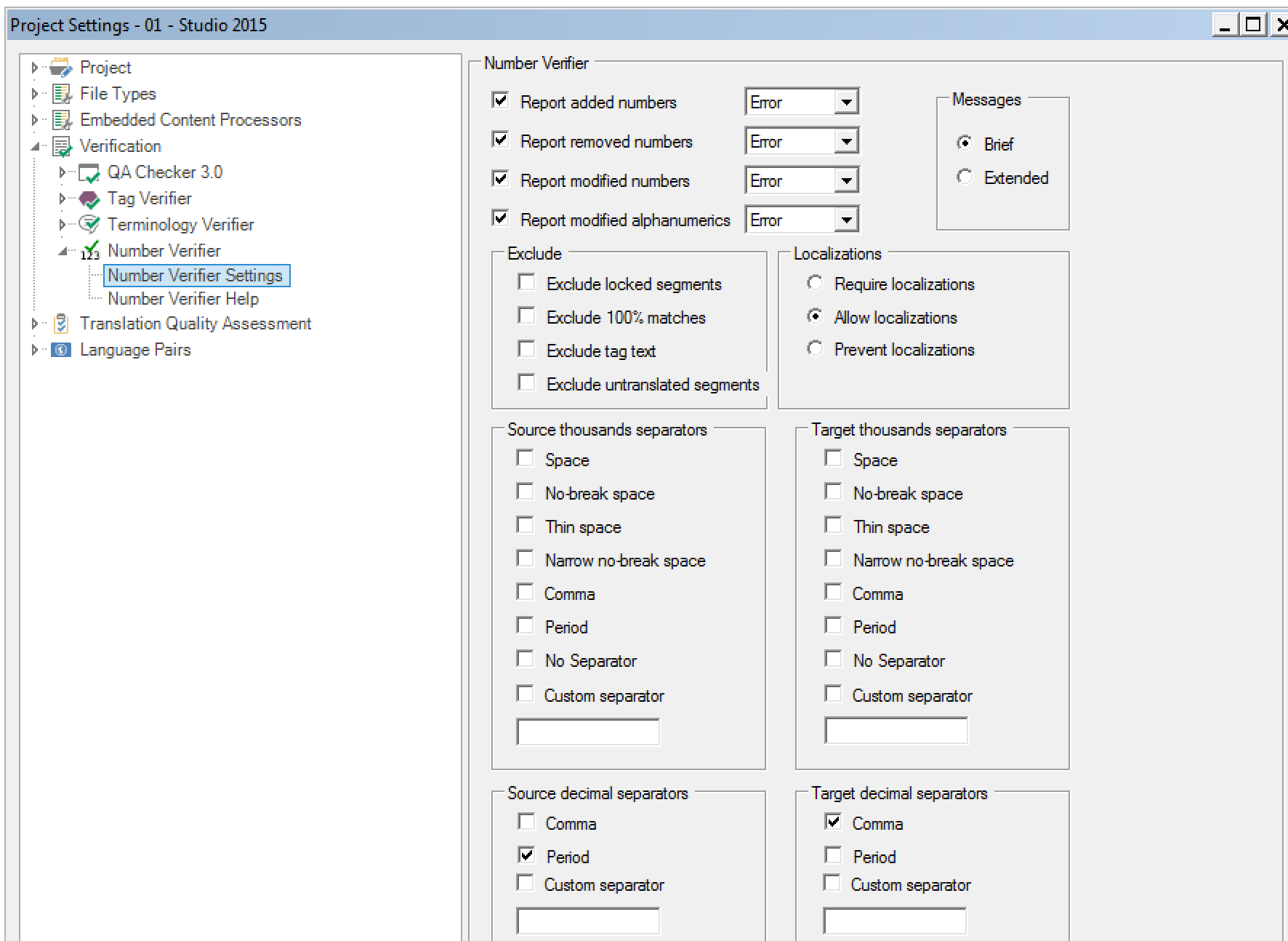 This means that depending on the source and target language for that specific project I need to change the settings accordingly (for example I need to change "Source thousands separators" and "Target thousands separators" in a different way project by project, language by language (it doesn't automatically recognize the languages)
