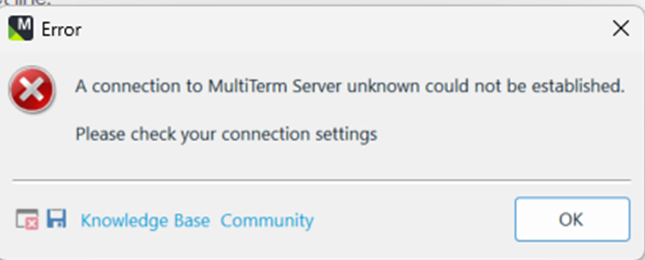 Unable to open local TB in Multiterm - A connection to Multiterm Server unknown could not be established