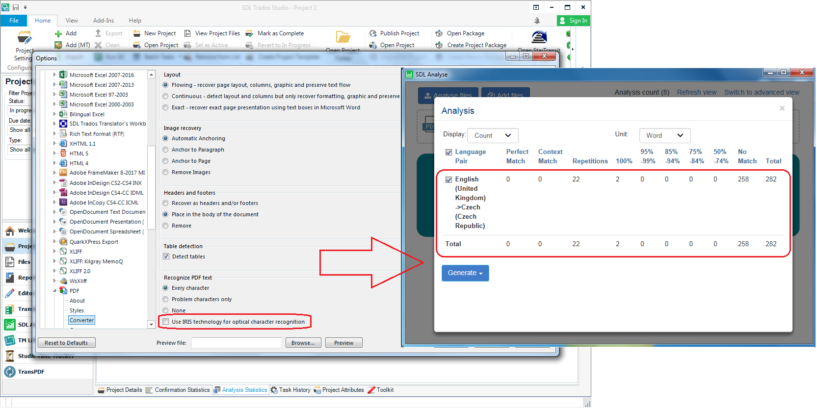 Is it possible use IRIS technology in SDL Analyse? When IRIS is enabled, all my scanned PDF are converted as images without any words. But when I disable IRIS, conversion is successful.