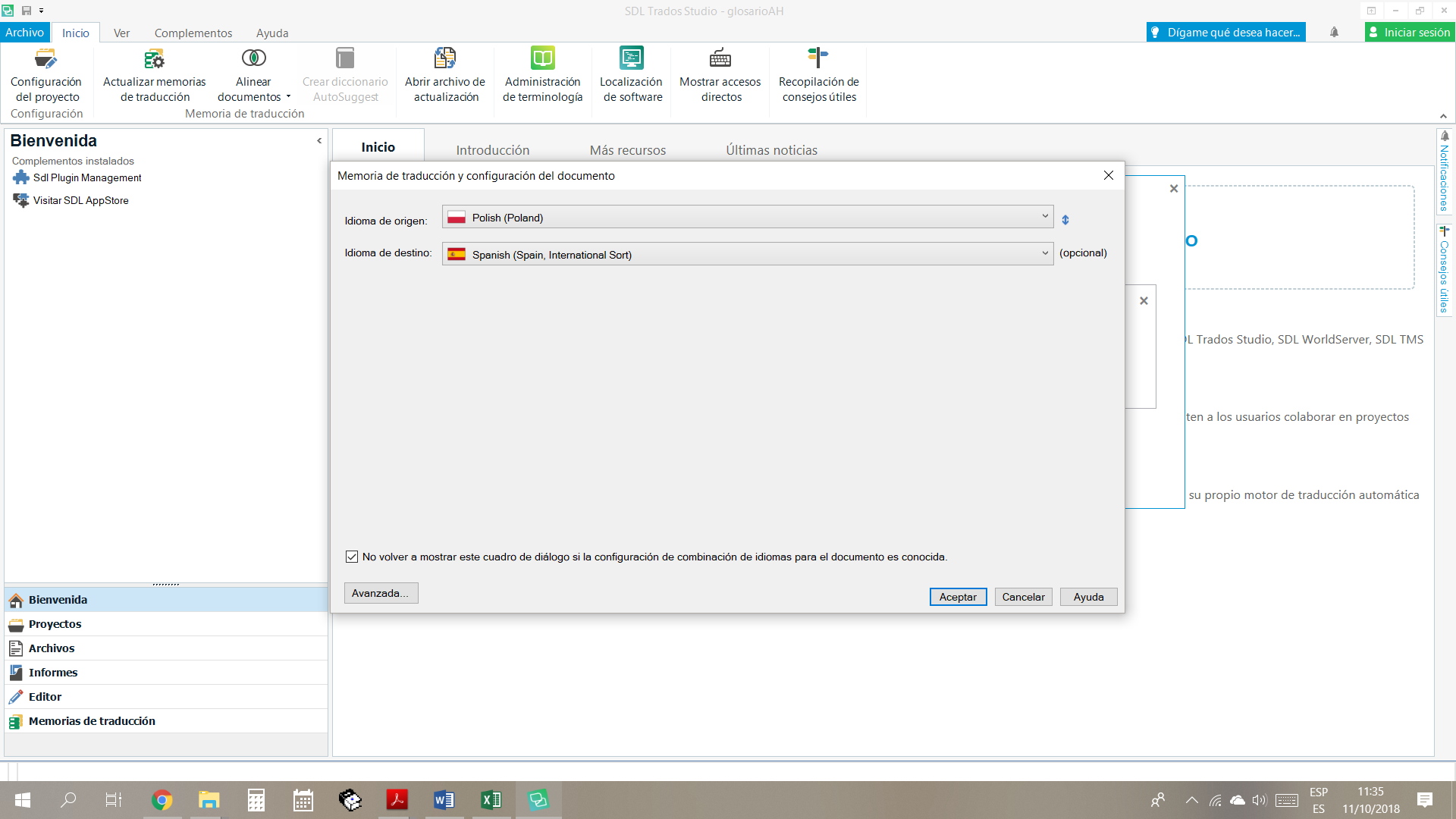 Hello, I have recently purchased version 2019 and, for some reason, I can't translate a single document, always need to create a project. When I click accept, the program does not react at all. Neither can I open the advanced options. Why could that be? Thank you for your help.