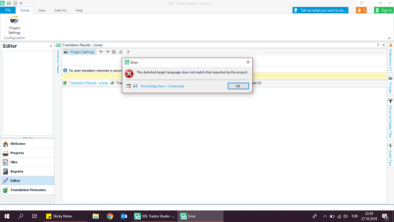I have created a project by making the relevant project settings like TM, Language pair, translation direction etc..