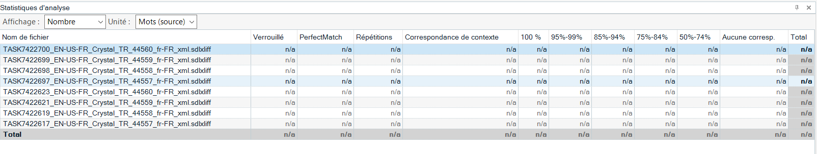 I'm having issues getting the breakdowns when working on imported sdlxliff file (I have no figures at all) in Studio 2017.