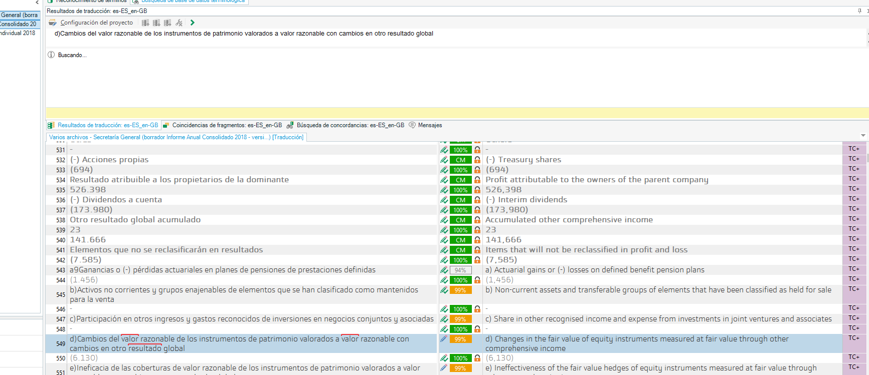 I can't view the matches on segments with 99% and fuzzy matches. The TM is not loading them, so I can't see where the translations of these segments have changed. How can I fix this?