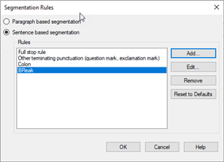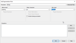 We use a fair amount of soft breaks br/ in documentation and I want to segment based on them. I customized the segmentation rules and added it, but then the segments were completely messed up when I opened the file.