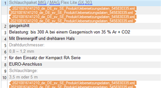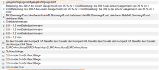 <target><![CDATA[<ul><li>gasgekühlt</li><li>Belastung: bis 300 A bei einem Gasgemisch von 35 % Ar + CO2</li><li>Mit Brennergriff und drehbaren Hals</li><li>Drahtdurchmesser: 0,8 – 1,2 mm</li><li>für den Einsatz der Kempact RA Serie</li><li>EURO-Anschluss</li><li>Schlauchlänge: 3,5 m oder 5 m</li></ul>]]></target>