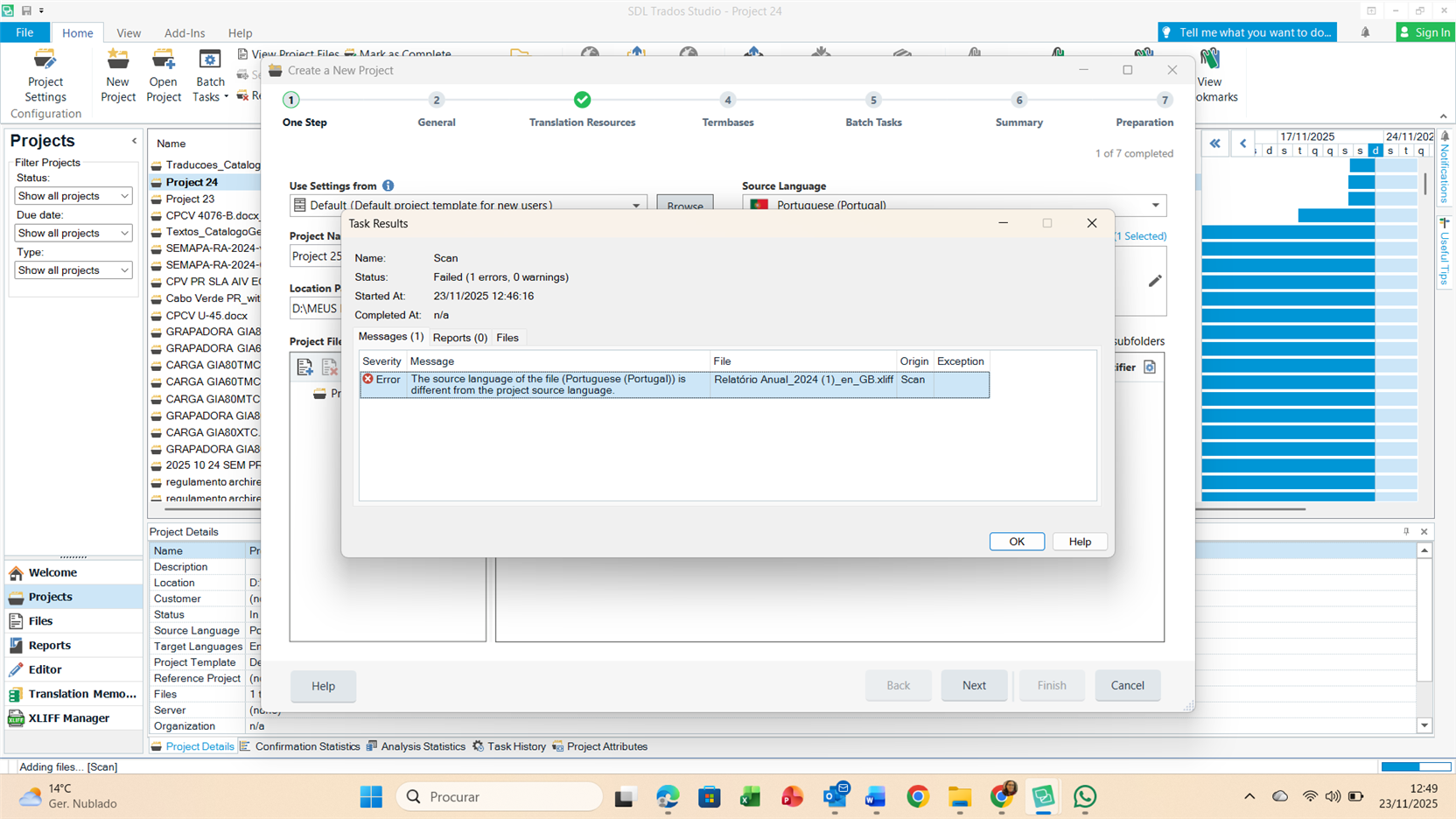 One of our clients is initiating a new process of producing its reports using a programme called Workiva, which exports the reports (or sections thereof) into Xliff 1.2 format. However, every time I try to create a project in TRados Studio 2019 with this Xliff 1.2  file I receive a language error message (screen shot below). I have checked and confirmed that the Xliff Language pair is correct (Portuguese (PT) in to English (UK). Can you please help?