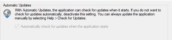 I face a strange situation on one of my training workstations. Studio 2015 SR2 is installed and working fine, with one exception: the option to check for updates is greyed out.
