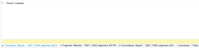 I have a file in Studio 2017 which contains "locked tags content" (if I may say: there are locks displayed inside the tags, before/after their content). First time I have seen those... Anyway. Most of the time, when reaching such segments, the only thing that the Translation Results shows is "Found 1 matches" and nothing else, even if a concordance search shows matches (above 70%). The Fragment Matches doesn’t show anything either.