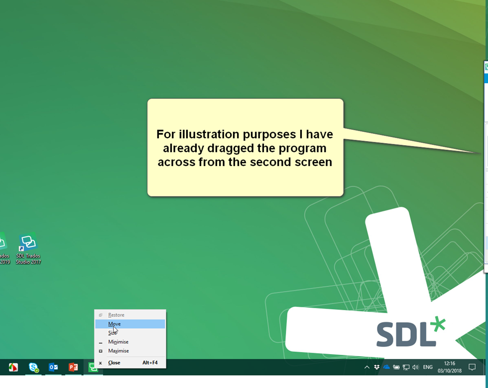 Now use the keyboard arrow keys to move the program across onto your main screen