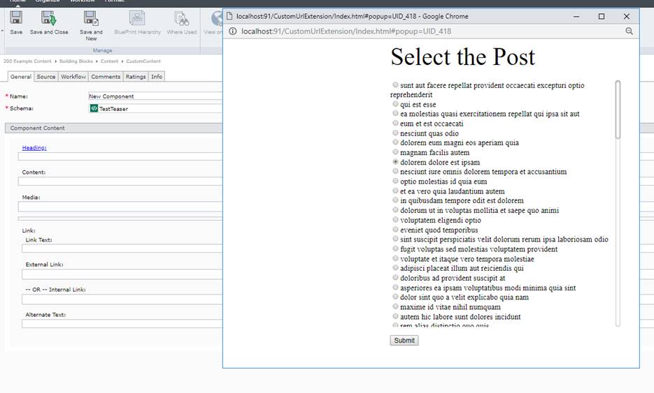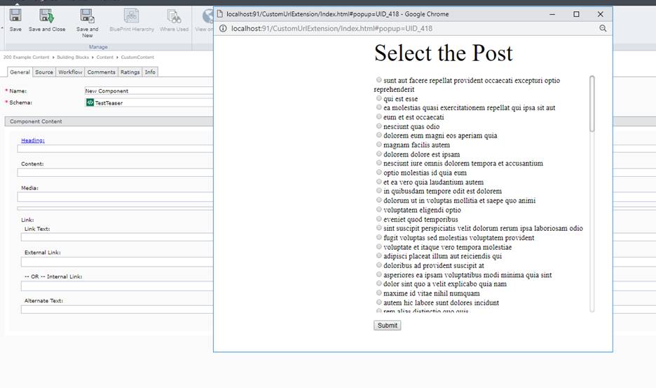 - Tridion Sites Configuration - Define URL in CM Schema, which serves the data for Component field specified.