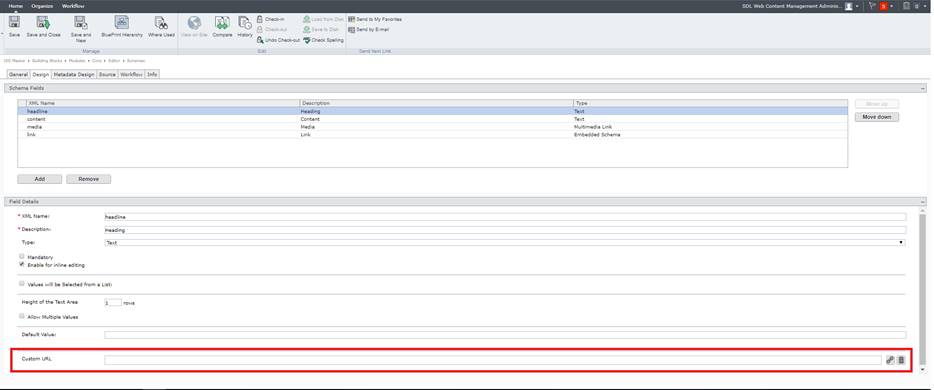 - Tridion Sites CM provide functionality of Custom URL on Schema